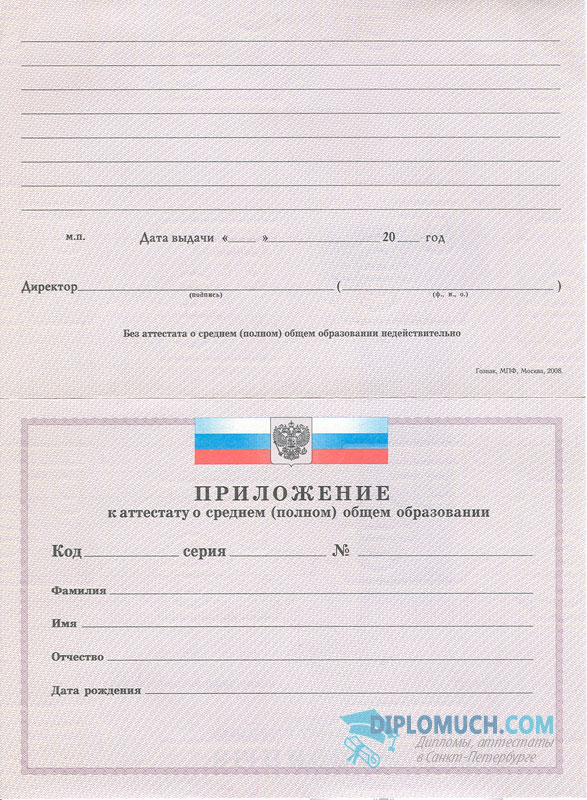 - Комплект: Аттестат + приложение;